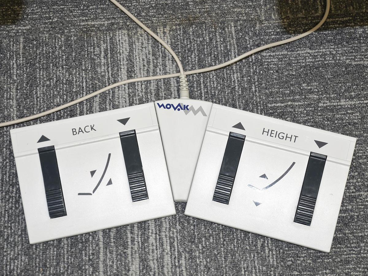 GYN-EX : Commande manuelle supplémentaire pour le réglage de la hauteur et du dossier, avec 2 boutons mémoire et une position SOS préenregistrée. Le piètement est équipé de roulettes verrouillables individuellement (Ø 75 mm) et d’un rembourrage plus épais et sans couture (6 cm).